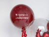 - большой (60 см) стеклянный королевский красный шар с индивидуальной надписью на атласной ленте с жемчужным хвостом из маленьких красных шариков на своем грузике