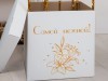 - Коробка с крышкой белая (60*60*60 см) и надписью, 2 шарика хром розовое золото, 2 медных хрома 3 хром золото (высота 34 см, диаметр около 26 см) с дождиком.