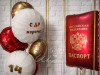 Эффектный сет шаров в красном и золоте с акцентом на паспорт или пенсионное свидетельство— для стильного и запоминающегося праздника.