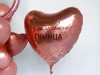 - букет на грузике из 9 шаров розовое дерево размера М (высота 34 см, диаметр около 26 см), 3 фольгированных сердец розовое золото сатин (45 см) и фольгированного шара Мистер Пи-Пи Розовое золото