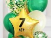 - Букет на грузике из 2 шаров айвори, 3 коричневых, 3 зеркальных зеленых размера М (высота 34 см, диаметр около 26 см) 2 прозрачных шаров с конфетти микс (зеленые-золотые кружки) размера М (высота 42 см, диаметр около 33 см), Фольгированного шара на выбор "Капибара в колпаке", "Капибара танцует". 1 Золотой сатиновой звезды 45 см