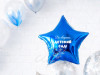 - Букет на грузике из 3 нежно-голубых, 3 синих, 3 серебряных металликов размером М, 2 прозрачных шаров с конфетти размером L, 1 синей и 1 серебряной звездочки (45 см), 1 большой (81 см) синей звезды с надписью