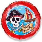- Букет на грузике из 3 белых и 6 синих непрозрачных шаров размера М, 1 круга Круг "С Днем Рождения" (пират) Красный и большого пиратского корабля (81 см)