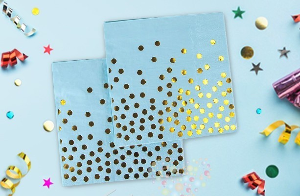 Салфетка "Конфетти золотое, Голубой/золото Металлик"