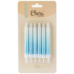 Свечи д/торта "Серебряные искры Бело-Голубой градиент" 0,7*8 см, 6 шт. с держат