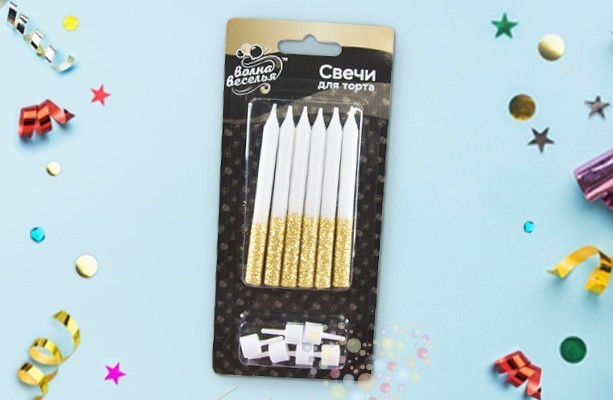 Декоративное украшение праздничного стола. Для декорирования торта, десерта ко Дню рождения, Юбилею, Новому Году. Размеры 0,77*8 см, 6 шт. с держателями.